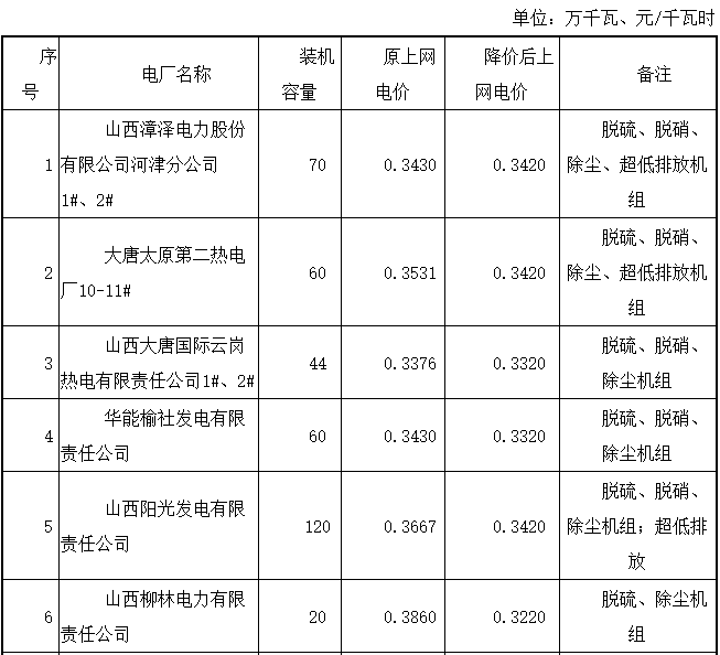 二、降低國網山西省電力公司與山西地方電力有限公司間躉售電價0.1分/千瓦時。