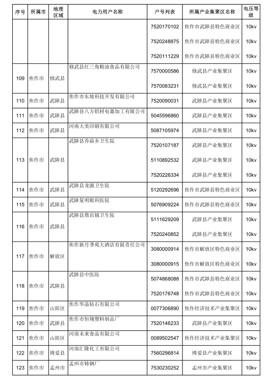 2018年河南省新增942家電力用戶公示名單(第三批)