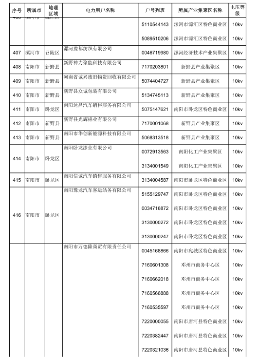 2018年河南省新增942家電力用戶公示名單(第三批)
