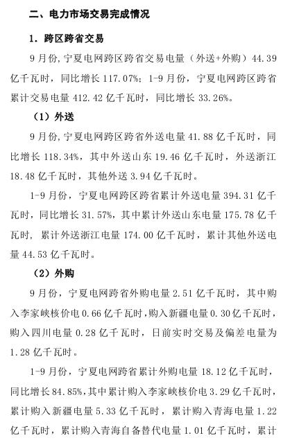 寧夏2018年9月電力市場(chǎng)交易信息月報(bào):9家售電公司代理119家用戶參與大用戶直接交易