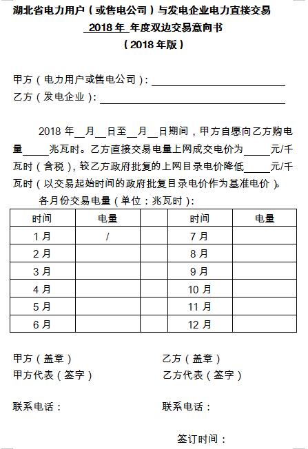 11月19日截止!湖北收集2018年年度補(bǔ)充電力直接交易雙邊交易意向協(xié)議