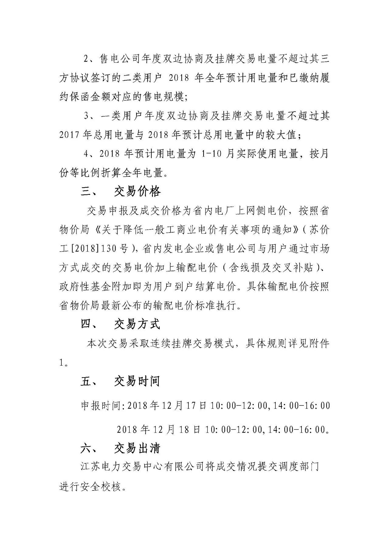 江蘇電力交易中心日前發(fā)布了《2019年江蘇電力市場(chǎng)年度掛牌交易公告》,本次交易采取連續(xù)掛牌交易,申報(bào)時(shí)間為2018年12月17日、18日的10:00至12:00,14:00至16:00。