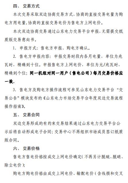 山東省2019年年度電力直接交易(雙邊協(xié)商)12月25日申報