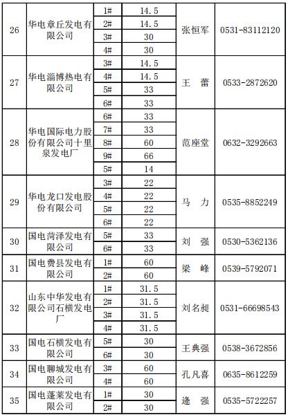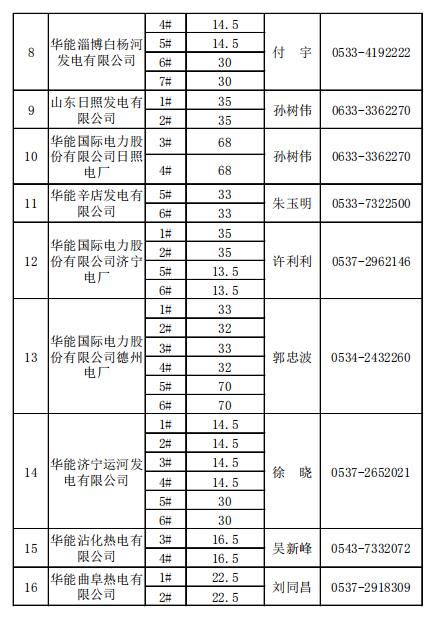 華能山東發(fā)電有限公司、華電山東公司、國(guó)電山東電力有限公司、大唐山東發(fā)電有限公司、華潤(rùn)電力華東大區(qū),有關(guān)企業(yè):