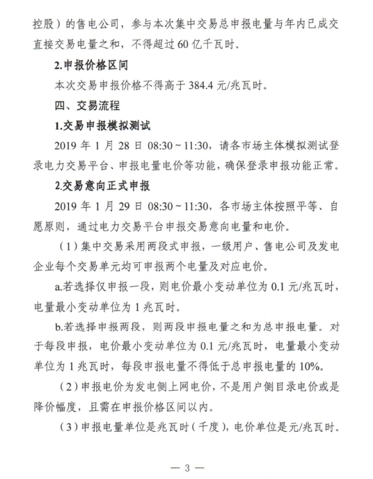 本次交易申報價格不得高于384.4元/兆瓦時。