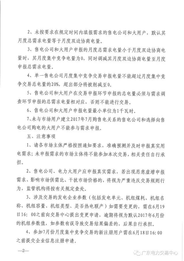 廣東電力交易中心日前發(fā)布了《2017年7月集中競(jìng)爭(zhēng)交易需求申報(bào)的通知》,通知中稱,交易時(shí)間為6月15日16:00至6月19日16:00,申報(bào)主體:與市場(chǎng)用戶建立2017年7月購(gòu)售電關(guān)系的售電公司和選擇參與批發(fā)市場(chǎng)交易的大用戶。