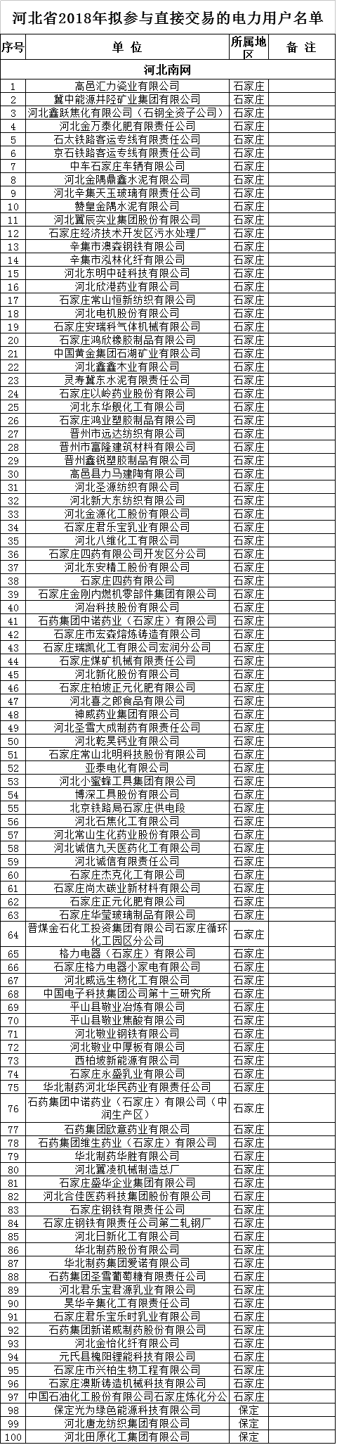 附件: 1.河北省2018年擬參與直接交易的電力用戶名單