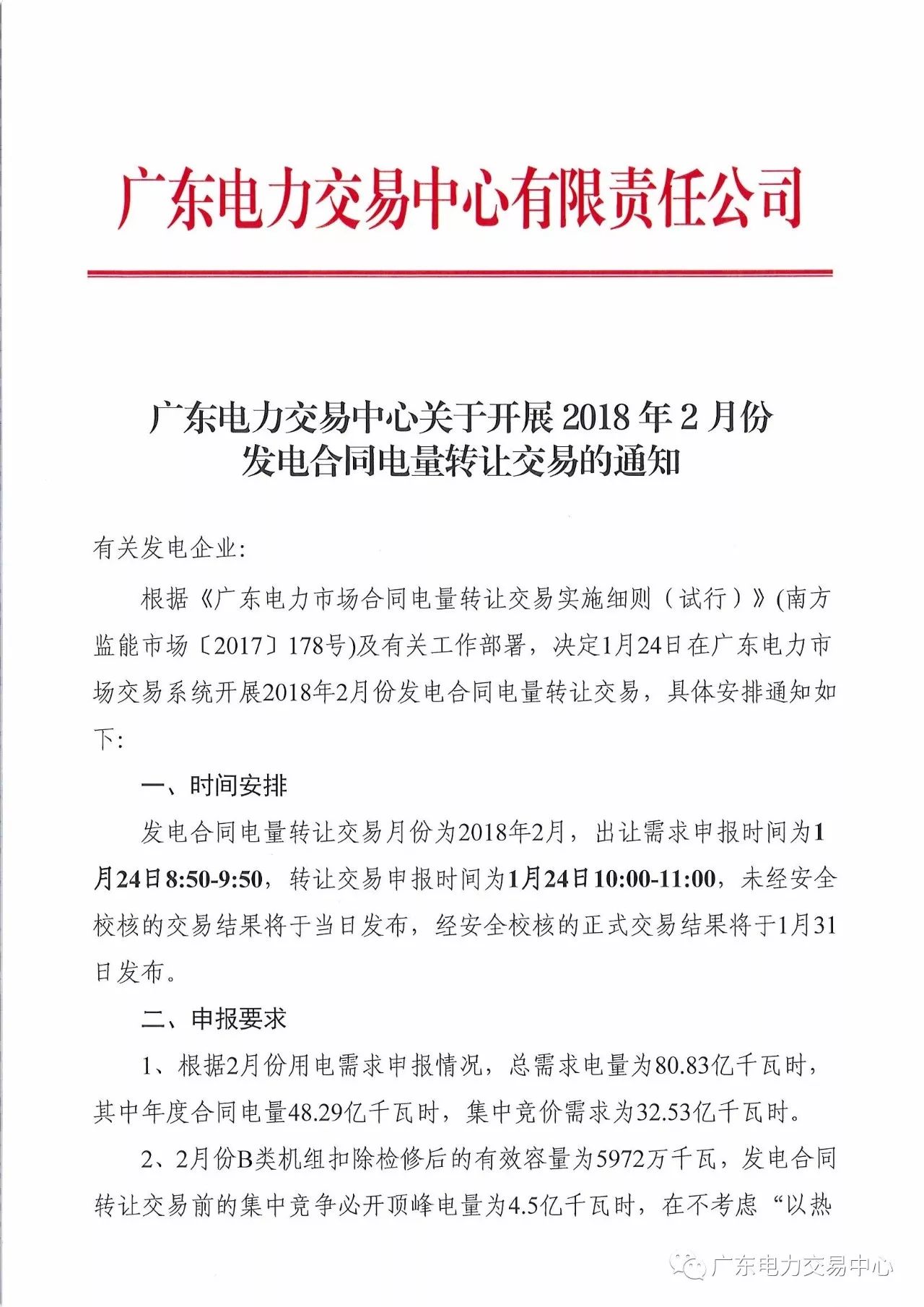 廣東電力交易中心發(fā)布了《關(guān)于開展2018年2月份發(fā)電合同電量轉(zhuǎn)讓交易的通知》,根據(jù)2018年2月份發(fā)電合同電量轉(zhuǎn)讓交易時間安排,廣東電力交易