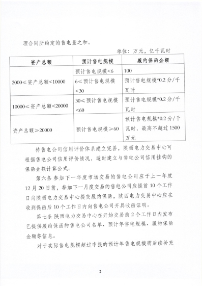 《陜西電力市場售電公司履約保函管理辦法(試行)》的通知
