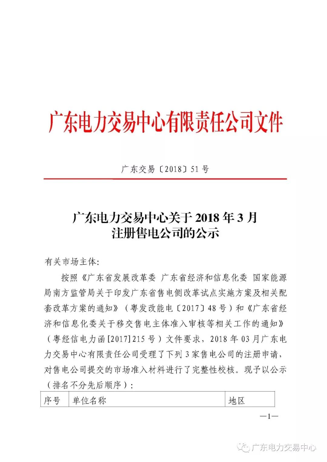 為做好售電公司的準(zhǔn)入審核等相關(guān)工作,廣東電力交易中心現(xiàn)對(duì)2018年03月注冊(cè)申請(qǐng)的3家售電公司進(jìn)行公示,公示正文如下: