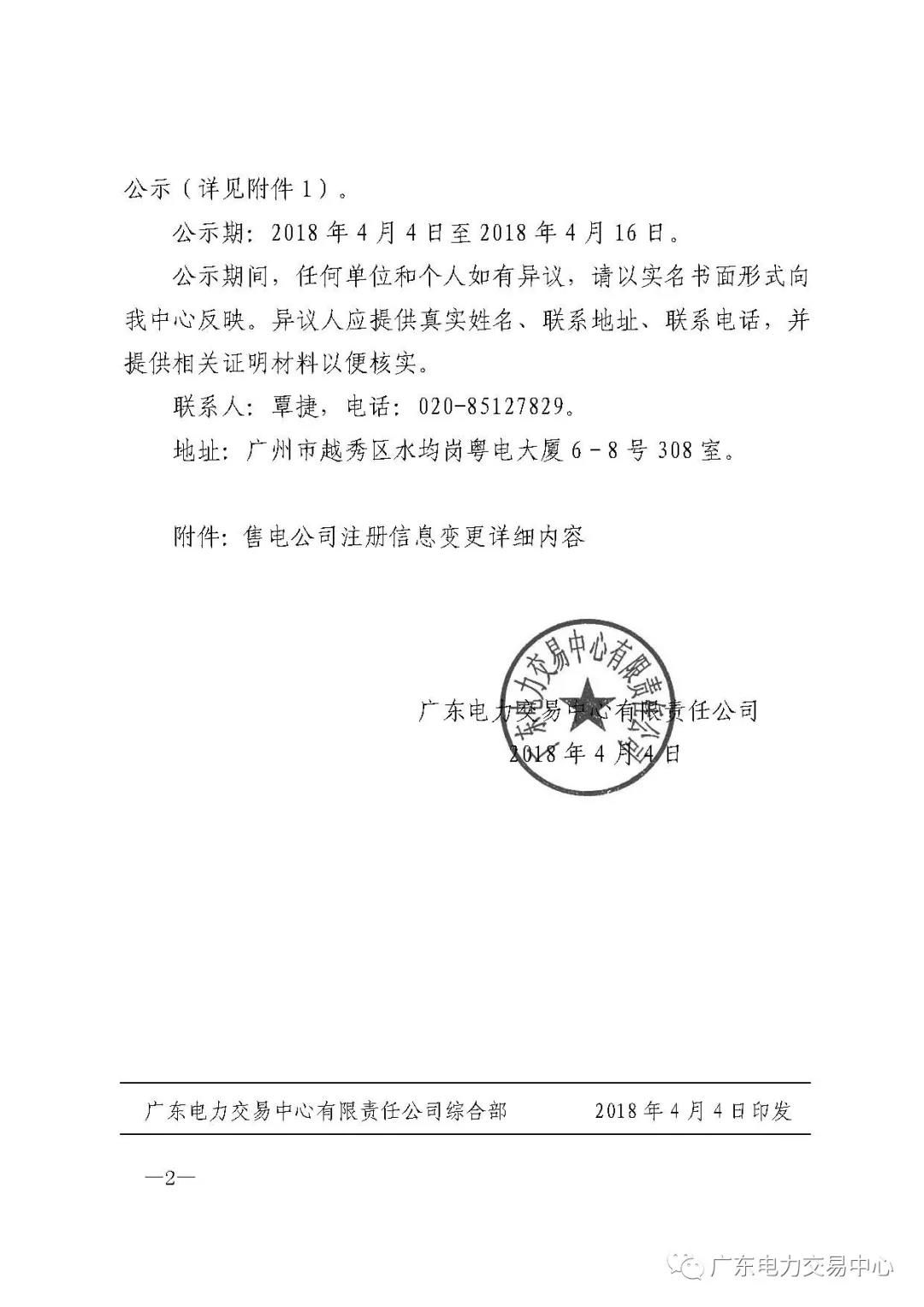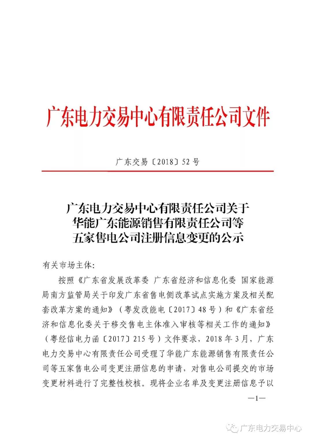 此外,廣東電力交易中心還對(duì)對(duì)2018年3月申請(qǐng)變更的五家售電公司變更注冊(cè)信息進(jìn)行公示,公示正文如下: