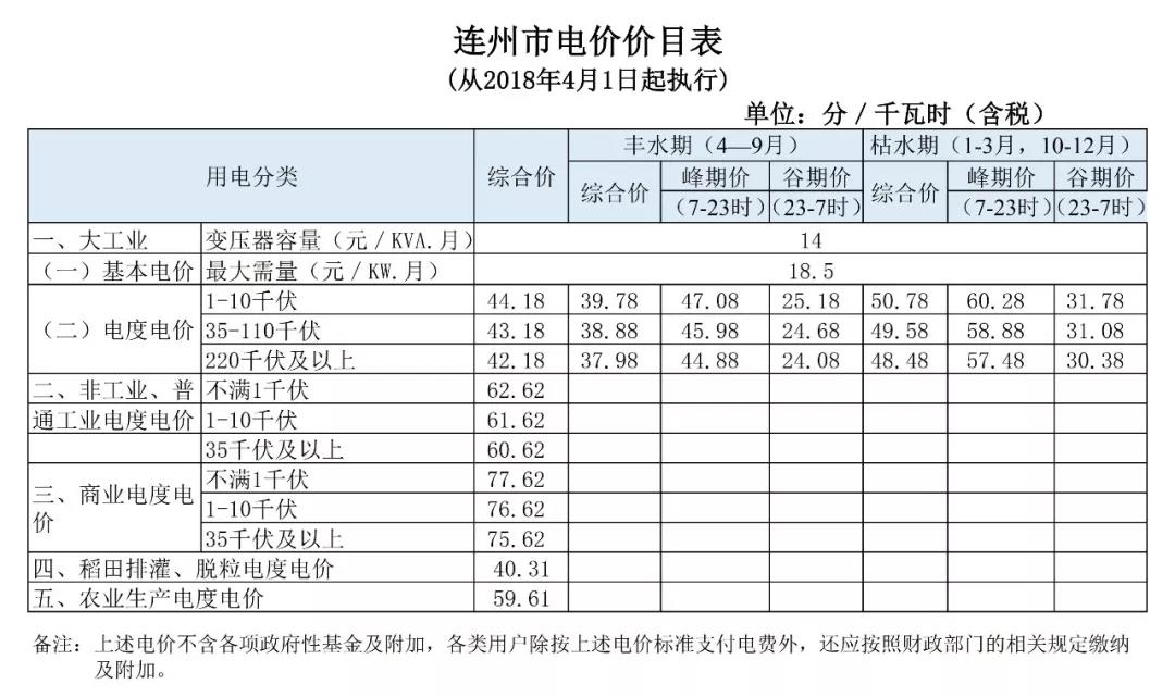 一、全省除深圳市外一般工商業(yè)電度電價(jià)每千瓦時(shí)統(tǒng)一降低1.78分(含稅,下同);深圳市的一般工商業(yè)電價(jià)和大工業(yè)電價(jià)已合并為工商業(yè)及其他電價(jià),其各類工商業(yè)及其他電價(jià)均統(tǒng)一降低0.59分。各地各用戶調(diào)價(jià)后的具體電價(jià)標(biāo)準(zhǔn)見附件。上述規(guī)定自2018年4月1日起執(zhí)行。