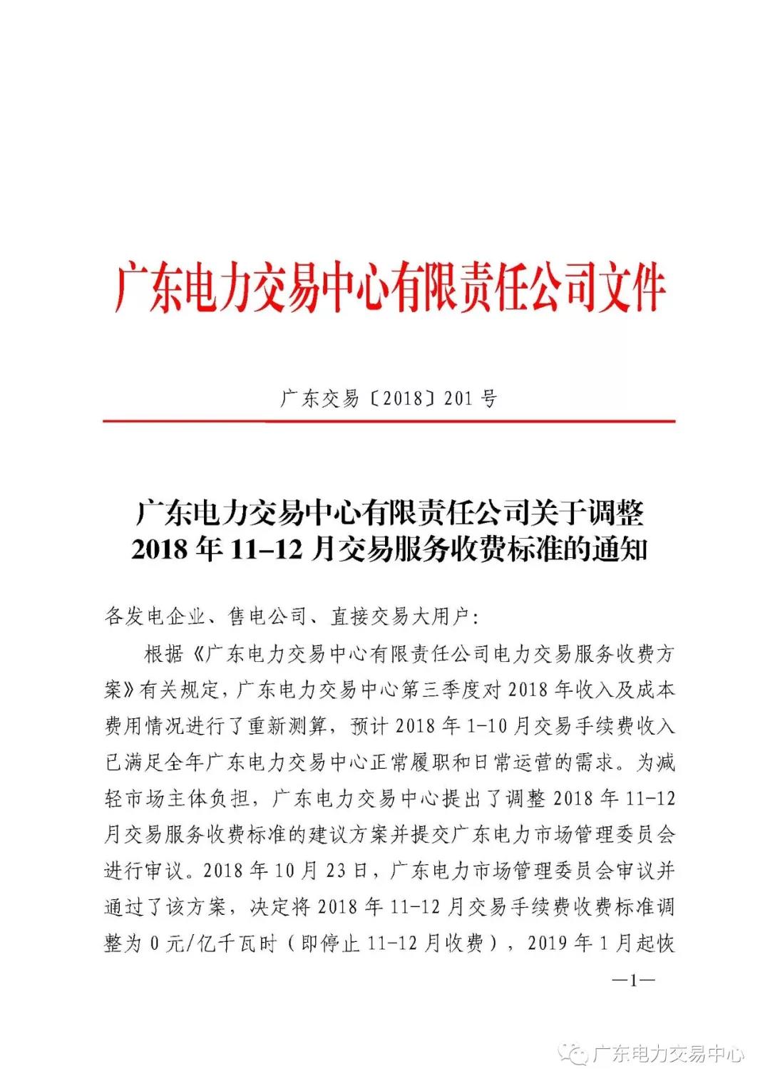 近日,經(jīng)廣東電力市場(chǎng)管理委員會(huì)審計(jì)并通過(guò),我中心決定將2018年11-12月交易手續(xù)費(fèi)收費(fèi)標(biāo)準(zhǔn)調(diào)整為0元/億千瓦時(shí)(即停止11-12月收費(fèi)),2019年1月起恢復(fù)按原標(biāo)準(zhǔn)收費(fèi),通知正文如下: