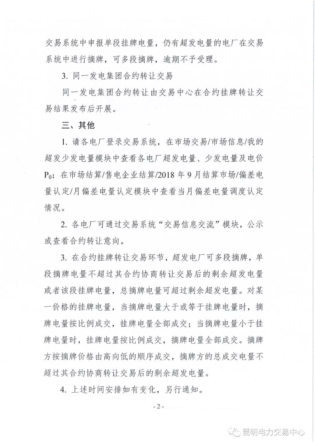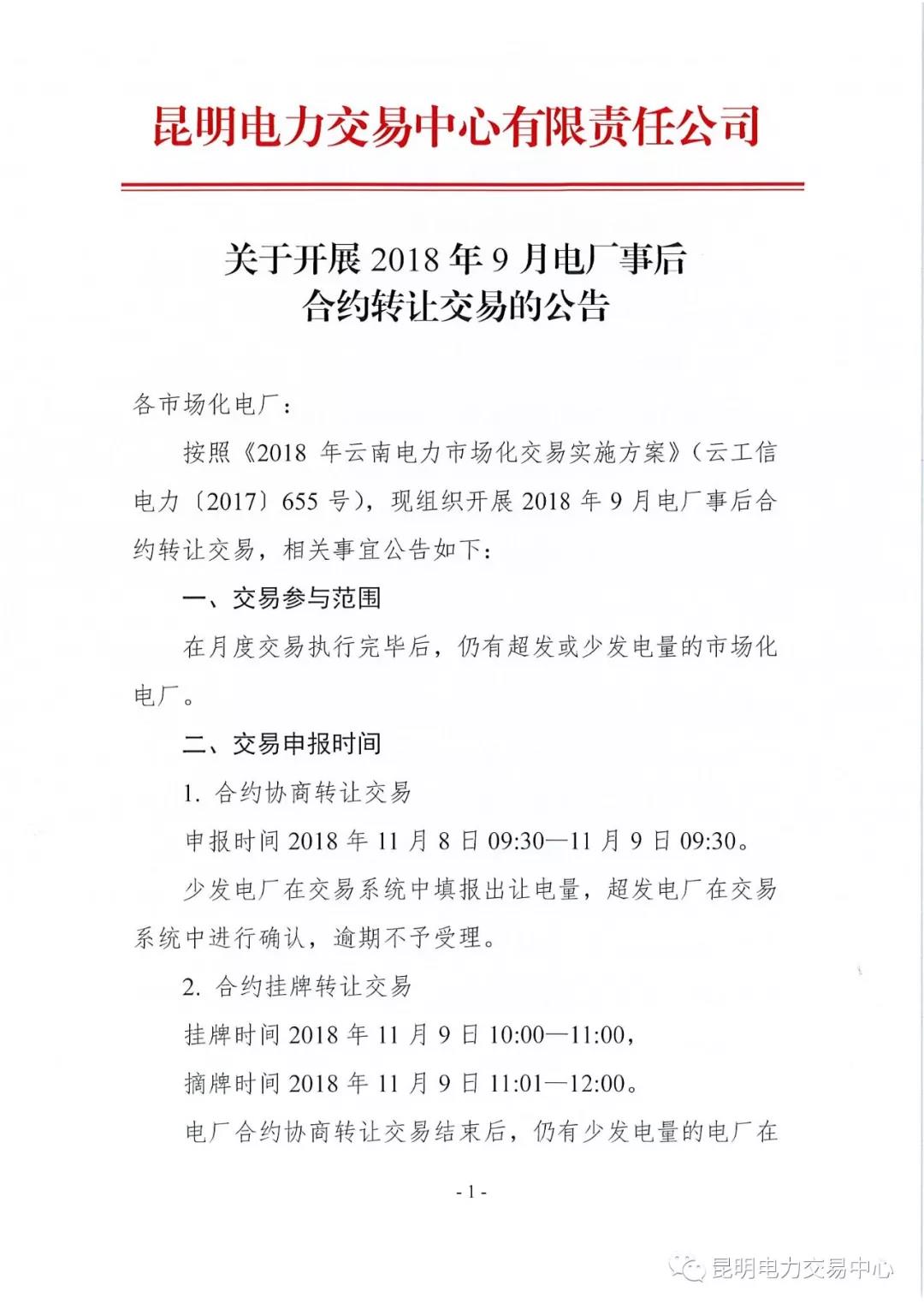 云南關(guān)于開展2018年9月電廠事后合約轉(zhuǎn)讓交易的公告