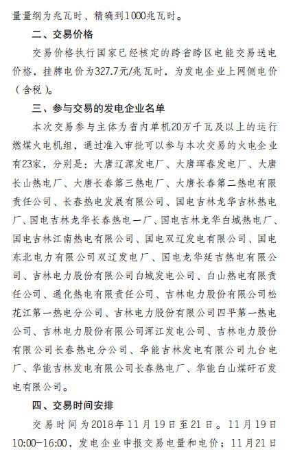 2018年吉林送遼寧第二次掛牌交易:交易規(guī)模1億千瓦時(shí)