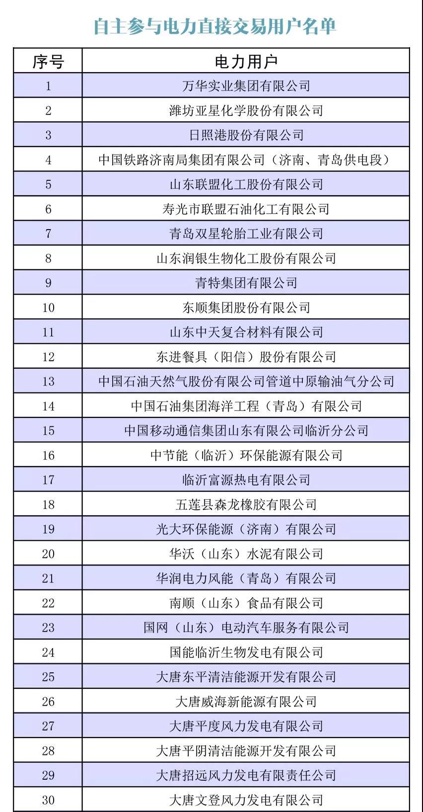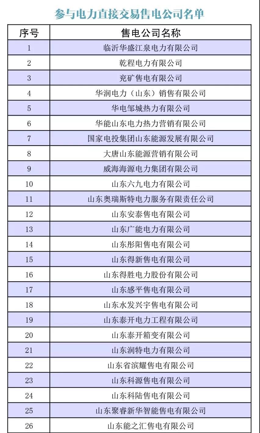 購(gòu)電方:在山東電力交易中心網(wǎng)站公示通過(guò)、完成注冊(cè)且已提交有效2018年跨省區(qū)電力用戶代理協(xié)議、省內(nèi)電力用戶代理協(xié)議的售電公司;原省經(jīng)信委準(zhǔn)許并在山東電力交易中心網(wǎng)站完成注冊(cè)、可自主參與2018年跨省區(qū)電力直接交易的電力用戶和省內(nèi)電力直接交易的電力用戶(詳見(jiàn)下表)。