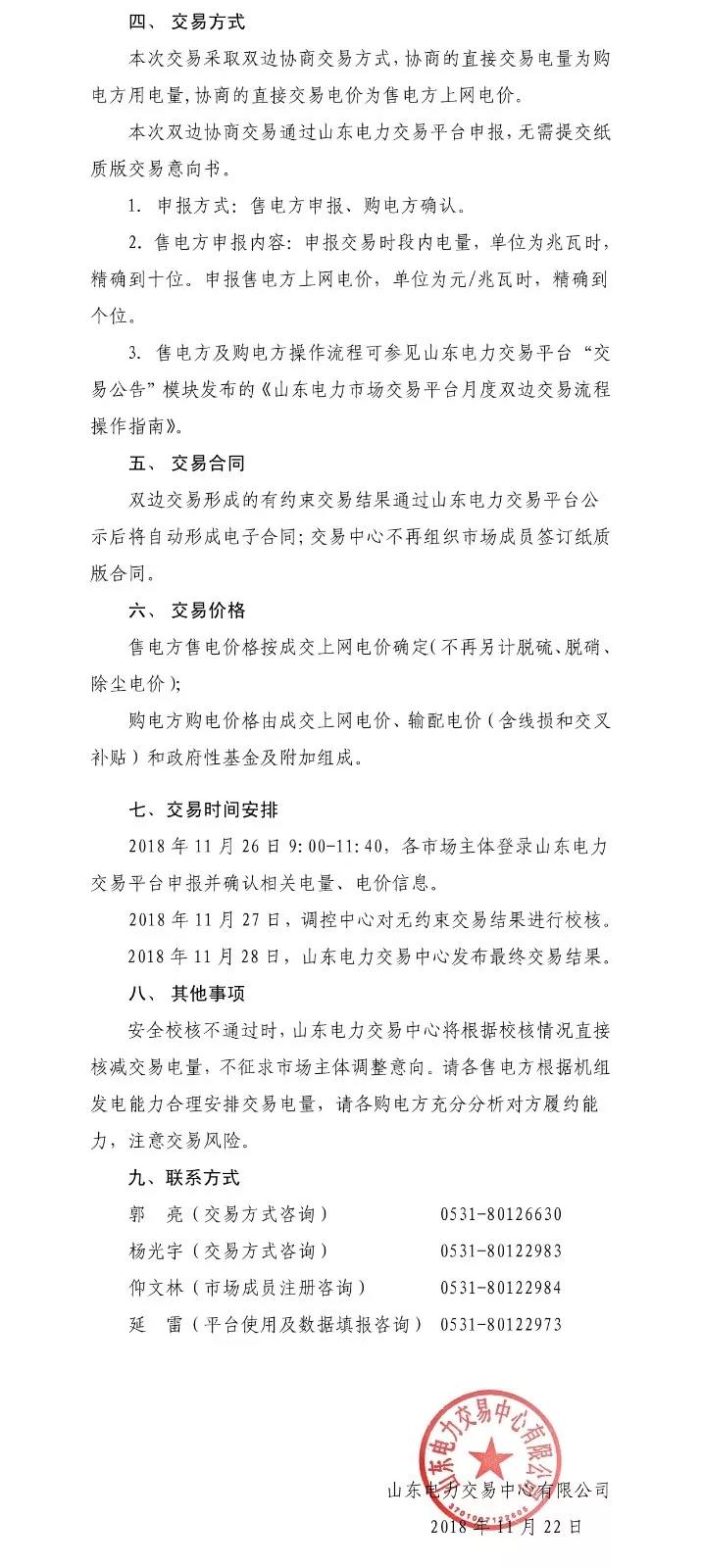 2018年11月28日,山東電力交易中心發(fā)布最終交易結(jié)果。