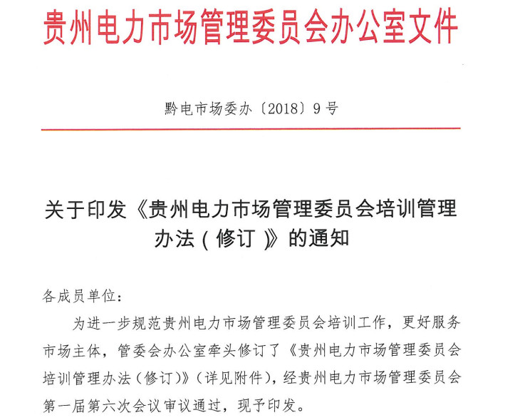 關于印發(fā)《貴州電力市場管理委員會培訓管理辦法(修訂)》的通知