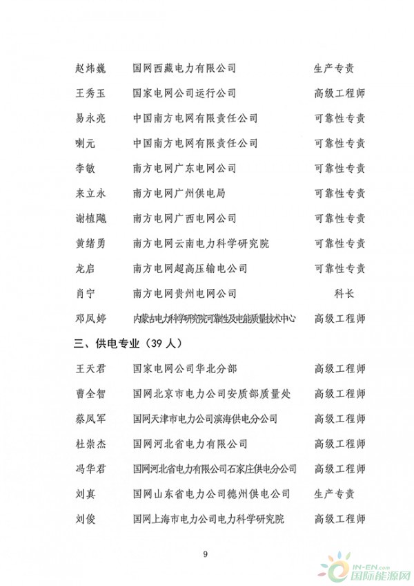 今日,國家能源局公布全國電力可靠性監(jiān)督管理專家?guī)焓着霂鞂<颐麊?,本次入庫專家?52人:其中發(fā)電專業(yè)89人,包括火力發(fā)電專業(yè)35人、水力發(fā)電專業(yè)22人、新能源發(fā)電專業(yè)25人、核電專業(yè)7人;輸變電專業(yè)24人;供電專業(yè)39人。
