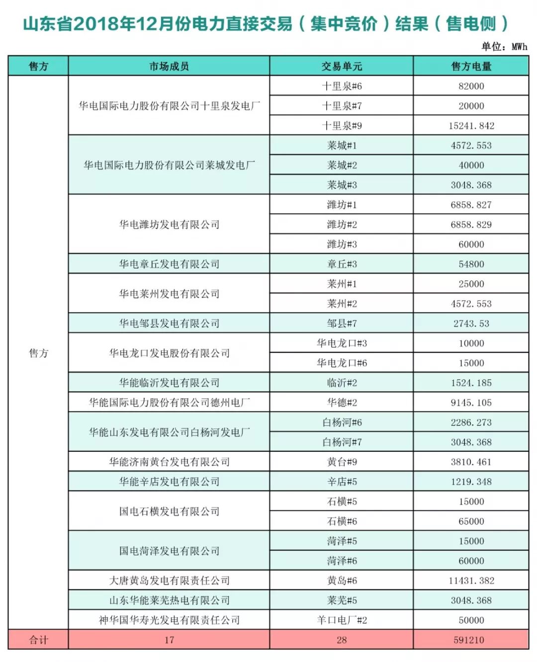 現(xiàn)將山東省2018年12月份電力直接交易(集中競(jìng)價(jià))結(jié)果(詳見(jiàn)下表)予以發(fā)布。