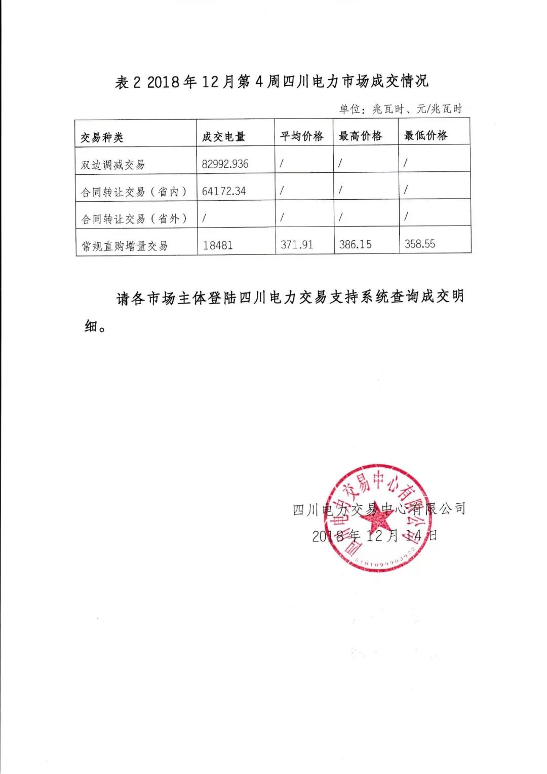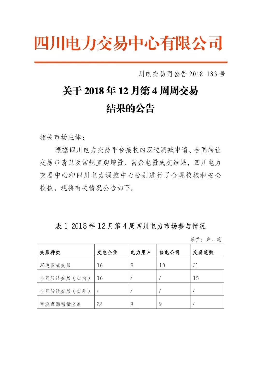 公告 | 四川關(guān)于2018年12月第4周周交易結(jié)果的公告
