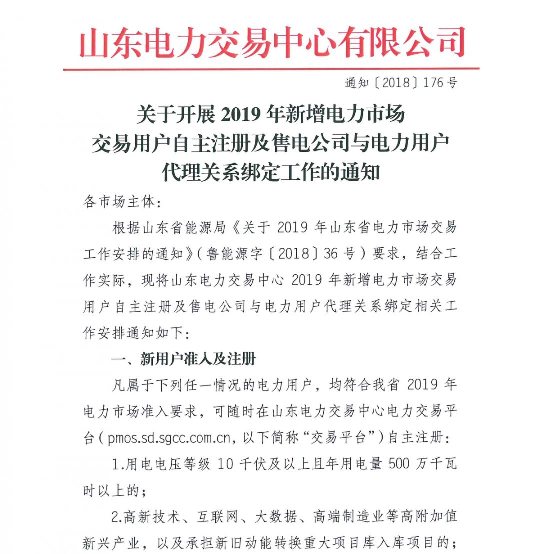 山東電力交易中心發(fā)布了《關于開展2019年新增電力市場交易用戶自主注冊及售電公司與電力用戶代理關系綁定工作的通知》