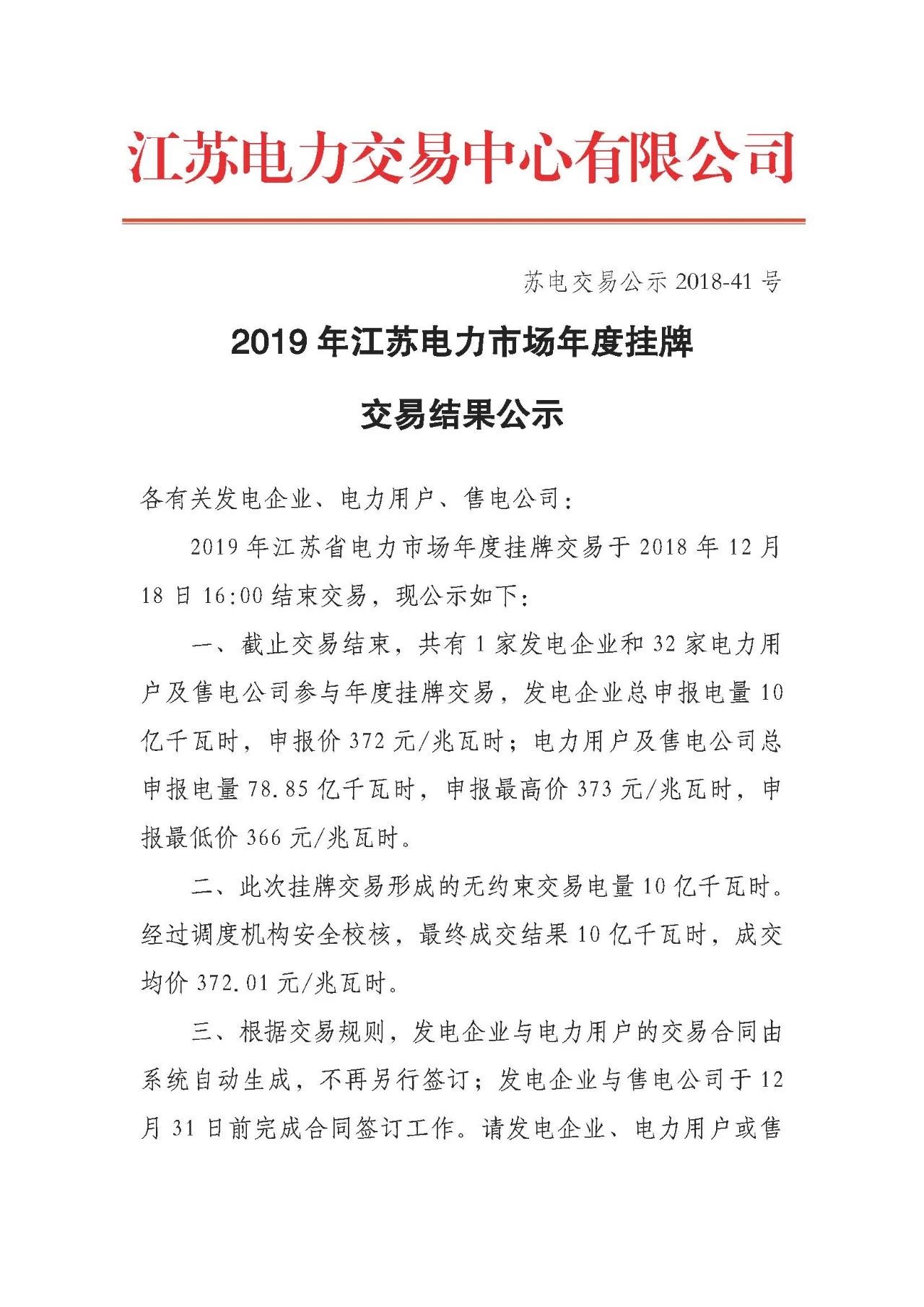 江蘇電力交易中心發(fā)布了《2019年江蘇電力市場(chǎng)年度掛牌交易結(jié)果公示》