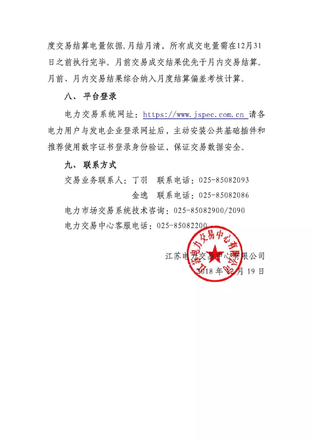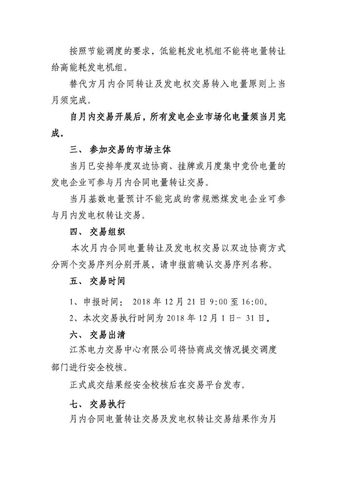 江蘇省發(fā)電企業(yè)2018年12月份月內(nèi)合同電量轉(zhuǎn)讓及發(fā)電權(quán)交易公告