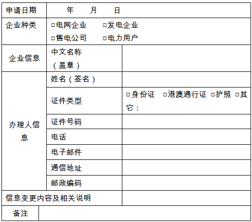 冀北發(fā)布電力市場(chǎng)主體注冊(cè)、信息變更、注銷申請(qǐng)書模板