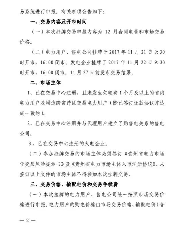 11月16日,貴州電力交易中心發(fā)布了12月掛牌交易公告,決定于11月21日至22日組織開(kāi)展2017年12月掛牌交易。