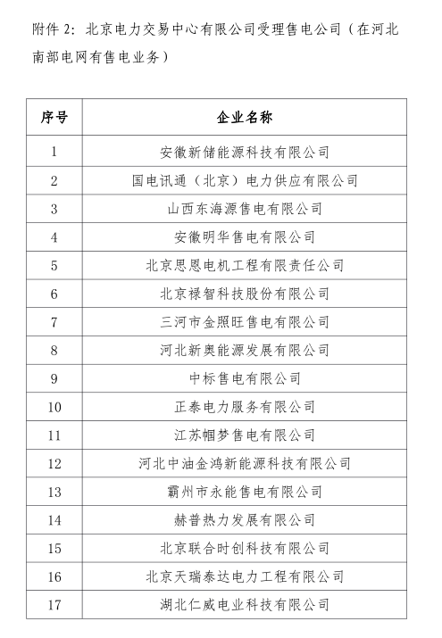 河北發(fā)布關(guān)于23家售電公司公示結(jié)果的公告