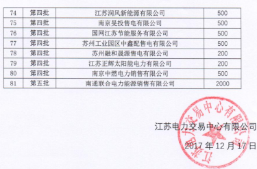 江蘇電力交易中心12月17日發(fā)布了第二次更新的江蘇省售電公司履約保函辦理情況公示,截止2017年12月17日22:00,江蘇電力交易中心共收到81家售電公司遞交的銀行履約保函。