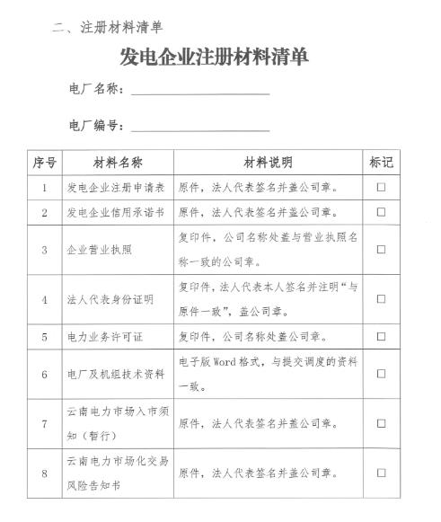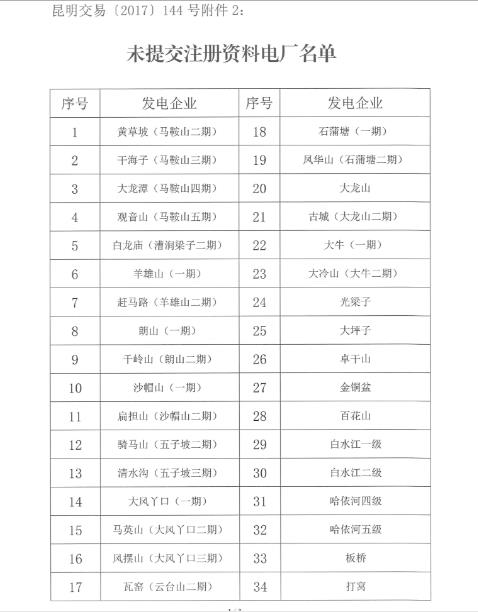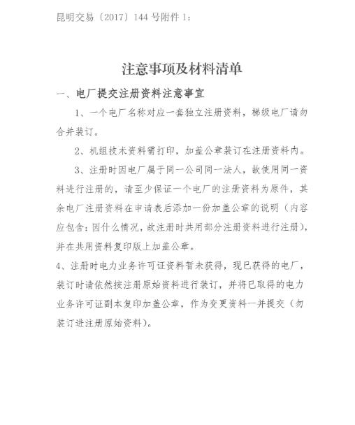 2018年1月1日,昆明電力交易中心發(fā)布《關(guān)于進一步補充完善云南電力市場注冊資料的通知》。為確保注冊資料統(tǒng)一規(guī)范管理,2017年7月20日,昆明電力交易中心發(fā)布《關(guān)于提交云南電力市場注冊資料的通知》。截止2017年
