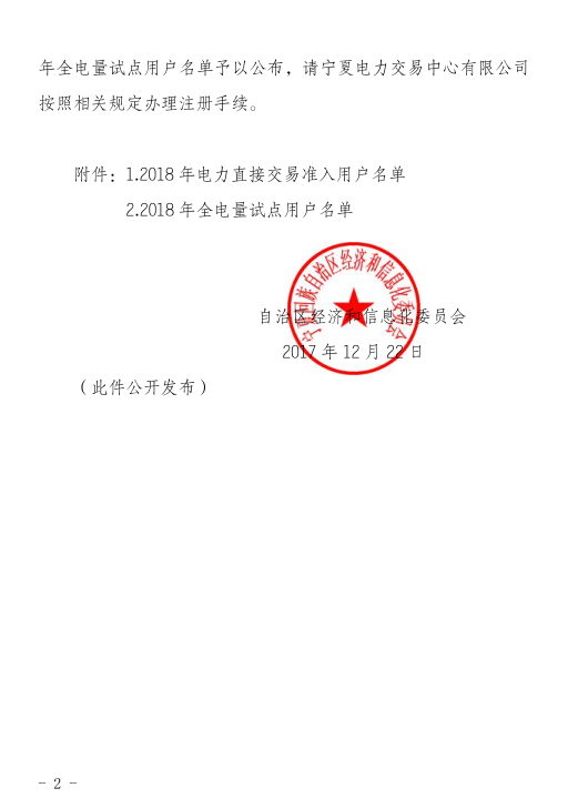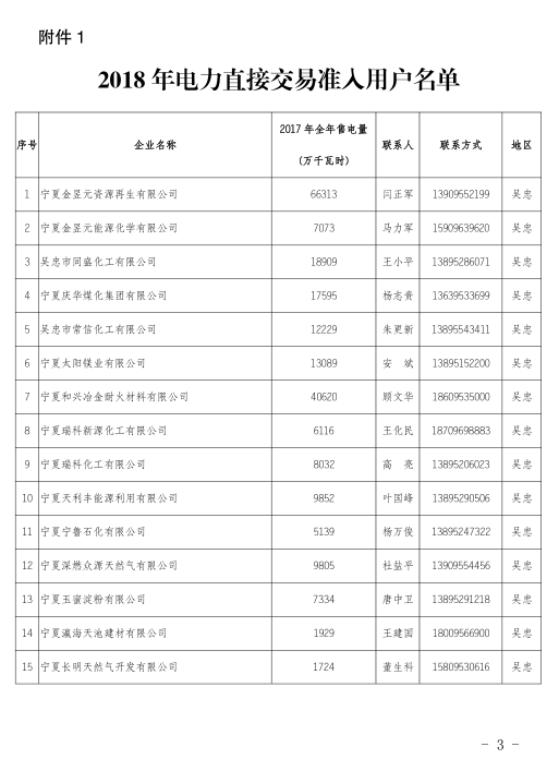 寧夏回族自治區(qū)經(jīng)信委日前發(fā)布了《2018年電力直接交易準(zhǔn)入用戶和試點(diǎn)用戶名單》,在名單中包含161家2018年電力直接交易準(zhǔn)入用戶及12家2018