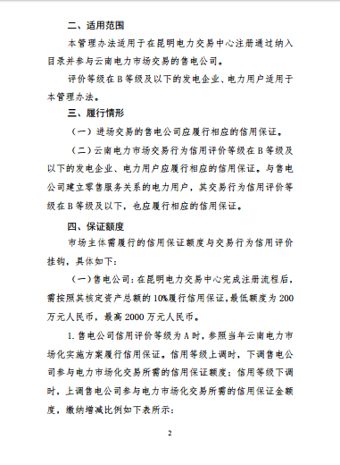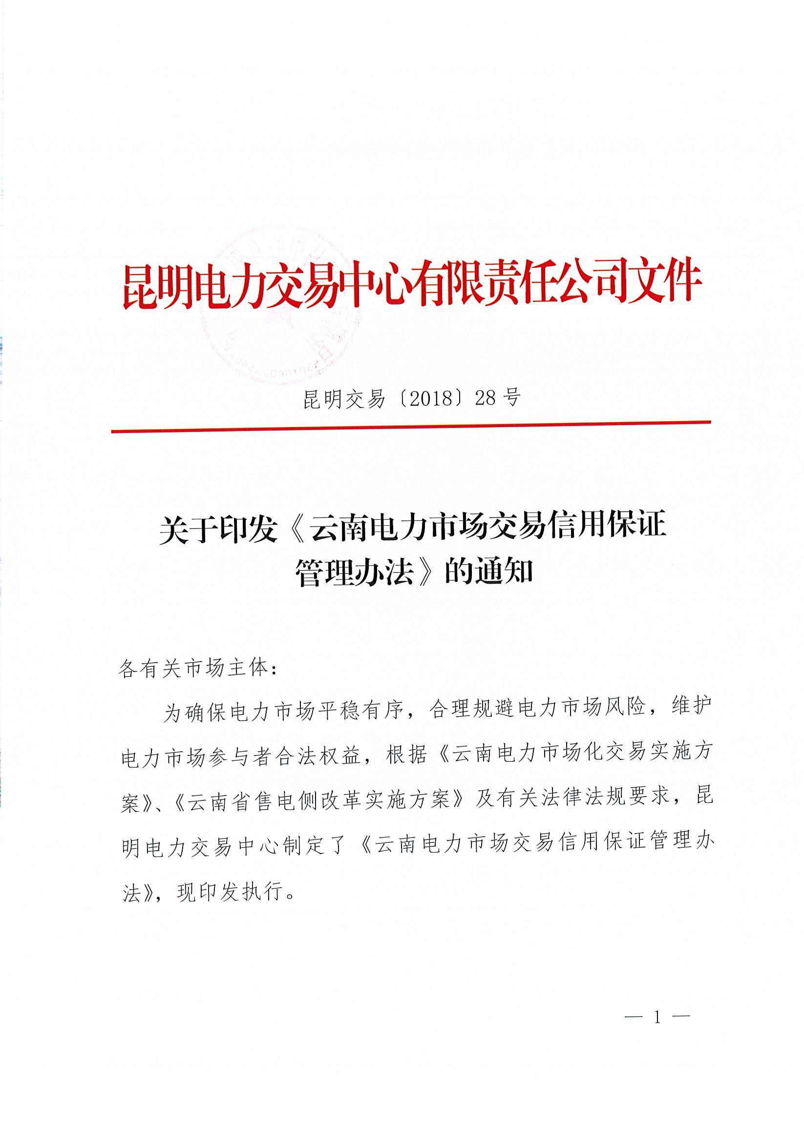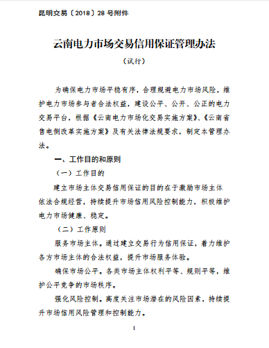 隨著電力市場建設(shè)的不斷推進(jìn),云南電力市場活躍度不斷提升,為強(qiáng)化市場風(fēng)險(xiǎn)防范能力,確保電力市場平穩(wěn)有序,合理規(guī)避風(fēng)險(xiǎn),維護(hù)電力市場參與者合法權(quán)益,強(qiáng)化公平、公開、公正的電力市場運(yùn)營能力,更好的為電力市場建設(shè)和市場主體服務(wù)。根據(jù)《云南電力市場化交易方案》、《云南省售電側(cè)改革實(shí)施方案》及有關(guān)法律法規(guī)要求,昆明電力交易中心制定了《云南電力市場交易信用保證管理辦法》。