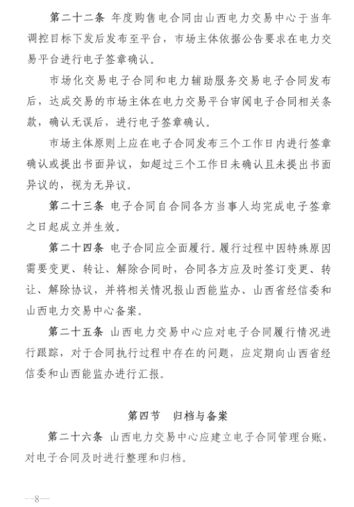 國家能源局山西監(jiān)管辦日前印發(fā)了《山西電力合同電子化管理辦法(暫行)》的通知,形成中長期交易范疇內(nèi)電力交易的全覆蓋,交易中心應(yīng)于2018