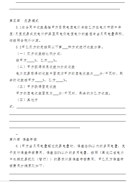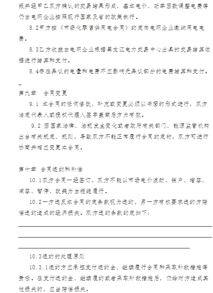 一、本合同適用于符合黑龍江省電力市場準入條件的售電公司與電力用戶之間簽訂的購售電代理合同。