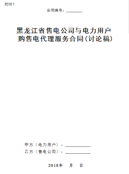 黑龍江省售電公司與電力用戶購售電代理服務合同、購售電合同征意見
