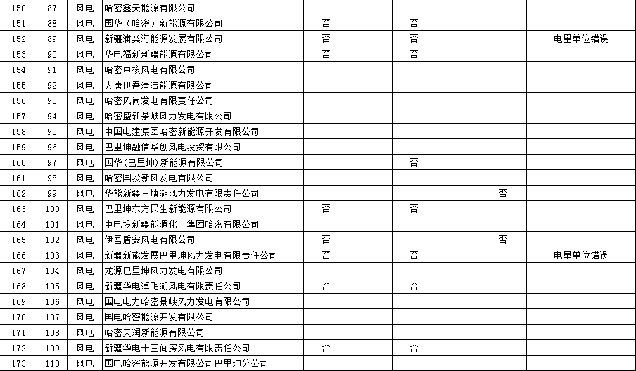 6、葛洲壩伊犁水電開發(fā)有限公司、新疆萬邦能源發(fā)展有限公司、新疆華瑞新能源有限公司等22家發(fā)電企業(yè)上報的數(shù)據(jù)有問題,其中15家上網(wǎng)電量大于或者等于發(fā)電量,7家電量單位錯誤,請下次注意。