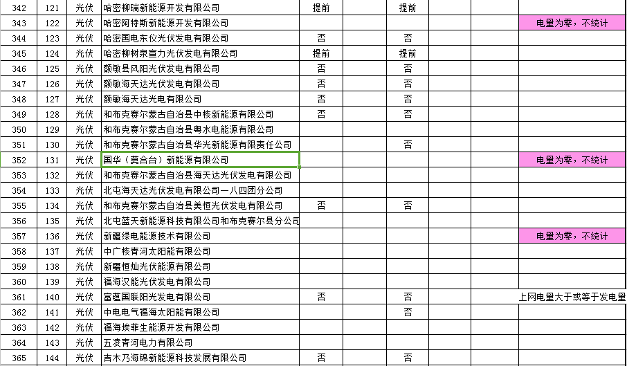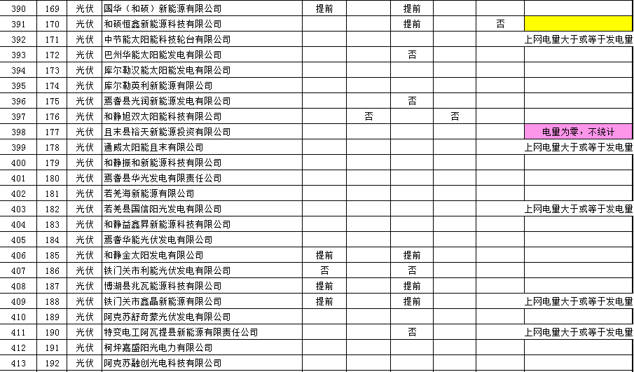 3、新疆華電吐魯番發(fā)電有限責任公司、中電投庫什塔依水電站、國華(巴里坤)新能源有限公司、哈密弗光太陽能有限公司等88家企業(yè)未能及時上報發(fā)電量,較上月減少20家。截至2018年6月1日15點,上海電力哈密宣力燃氣發(fā)電有限公司、烏魯瓦提水力發(fā)電廠、和靜旭雙太陽能科技有限公司3家企業(yè)未能上報發(fā)電量。