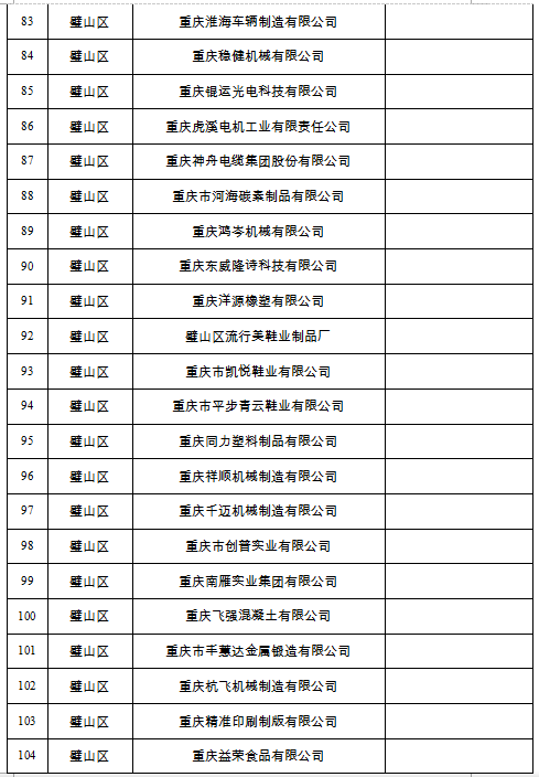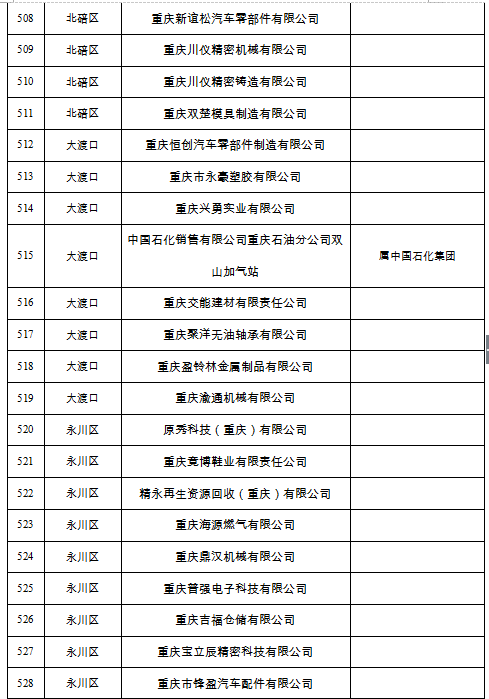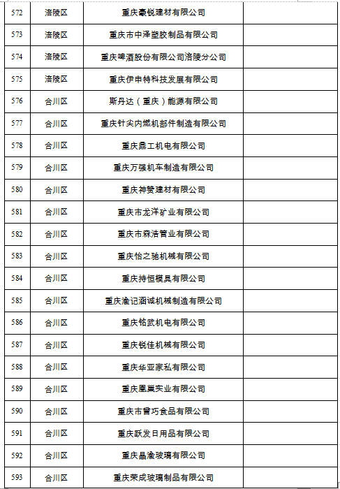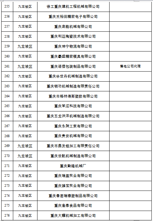 重慶市2018年第三批電力直接交易試點(diǎn)擬準(zhǔn)入新增企業(yè)名單