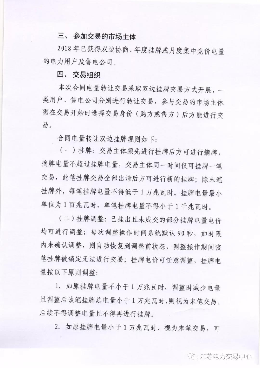 2018年7月份江蘇一類用戶及售電公司合同電量轉(zhuǎn)讓交易公告