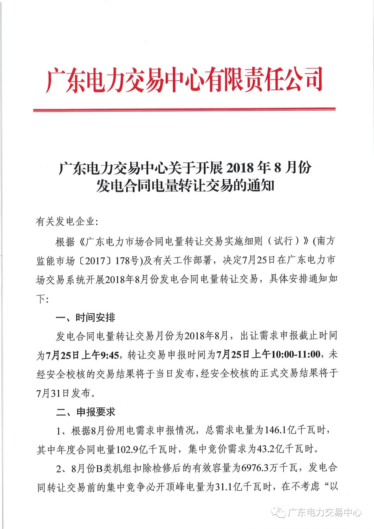 廣東2018年8月份發(fā)電合同電量轉(zhuǎn)讓交易:25日開展