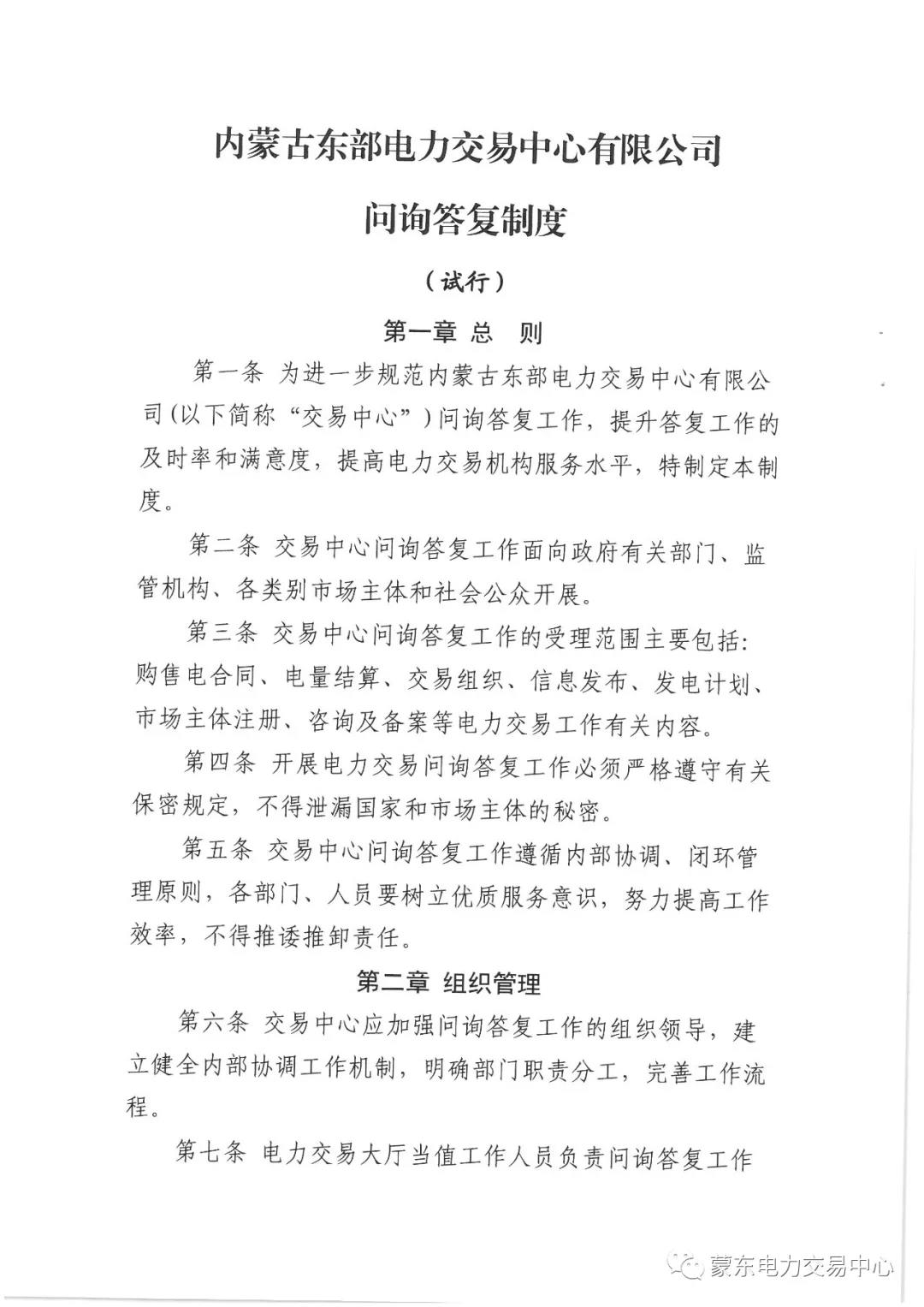 內蒙古東部電力交易中心有限公司問詢答復制度