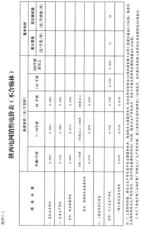 附件:1.陜西電網(wǎng)銷售電價(jià)表(不含榆林)