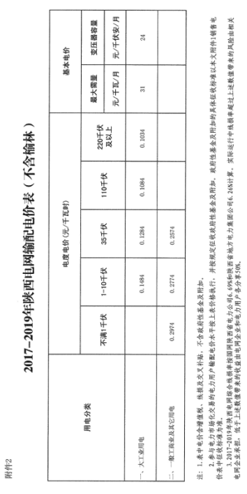 2.2017-2019年陜西電網(wǎng)輸配電價(jià)表(不含榆林)