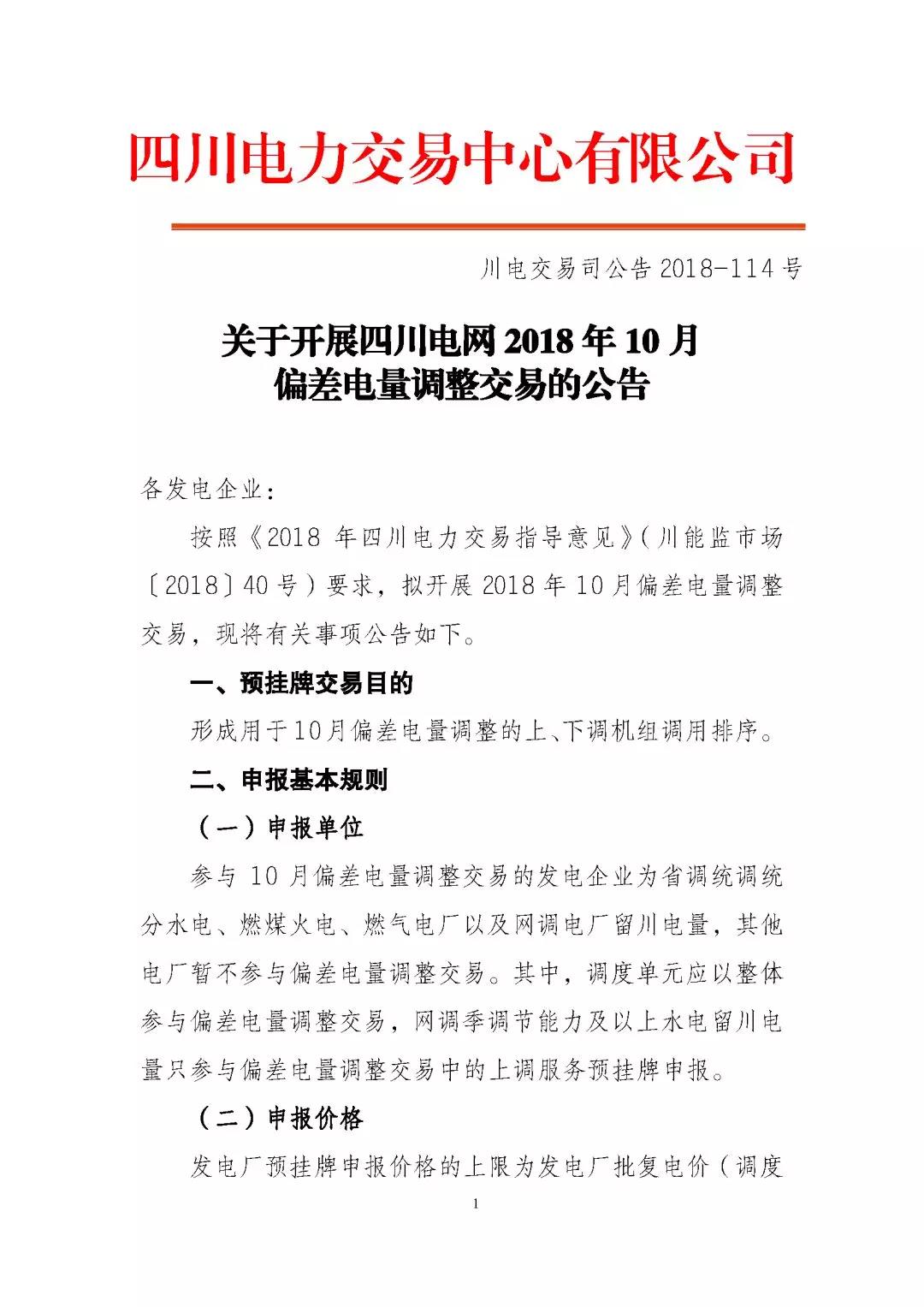 公告 | 關(guān)于開(kāi)展四川電網(wǎng)2018年10月偏差電量調(diào)整交易的公告