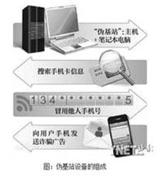 “偽基站”即假基站。設(shè)備是一種高科技儀器,一般由主機(jī)和筆記本電腦組成,通過(guò)短信群發(fā)器、短信發(fā)信機(jī)等相關(guān)設(shè)備能夠搜取以其為中心、一定半徑范圍內(nèi)的手機(jī)卡信息,通過(guò)偽裝成運(yùn)營(yíng)商的基站,任意冒用他人手機(jī)號(hào)碼強(qiáng)行向用戶手機(jī)發(fā)送詐騙、廣告推銷等短信息。