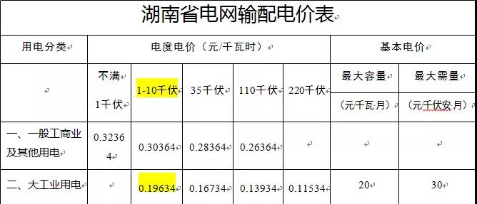 很多用戶反饋,參與市場化交易后看不懂電費明細單,不能清楚看出是否節(jié)省到電費,看下表,我們以1-10千伏的大工業(yè)為例,湖南省電網大工業(yè)用電銷售電價是0 6437元 千瓦時,湖南省電網大工業(yè)輸配電價是0 19634元 千瓦時: