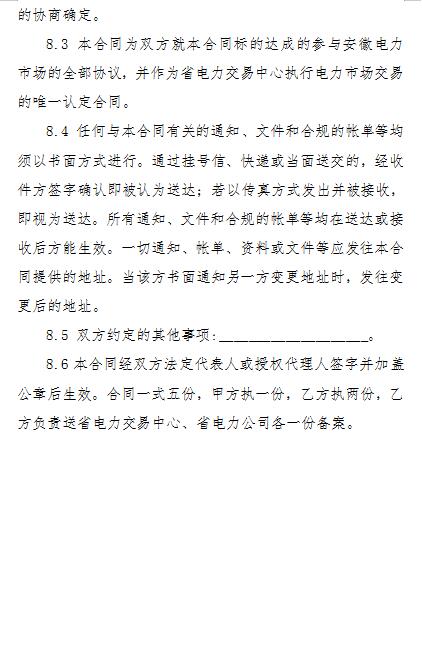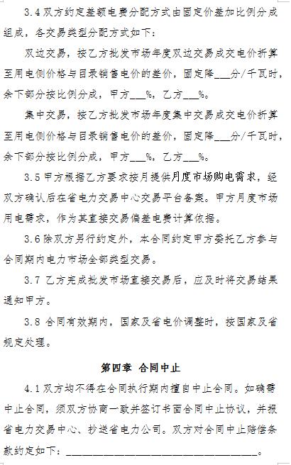 2.4.1 按照安徽電力市場規(guī)則,參與電力直接交易,與甲方共同承擔(dān)偏差考核費(fèi)用。